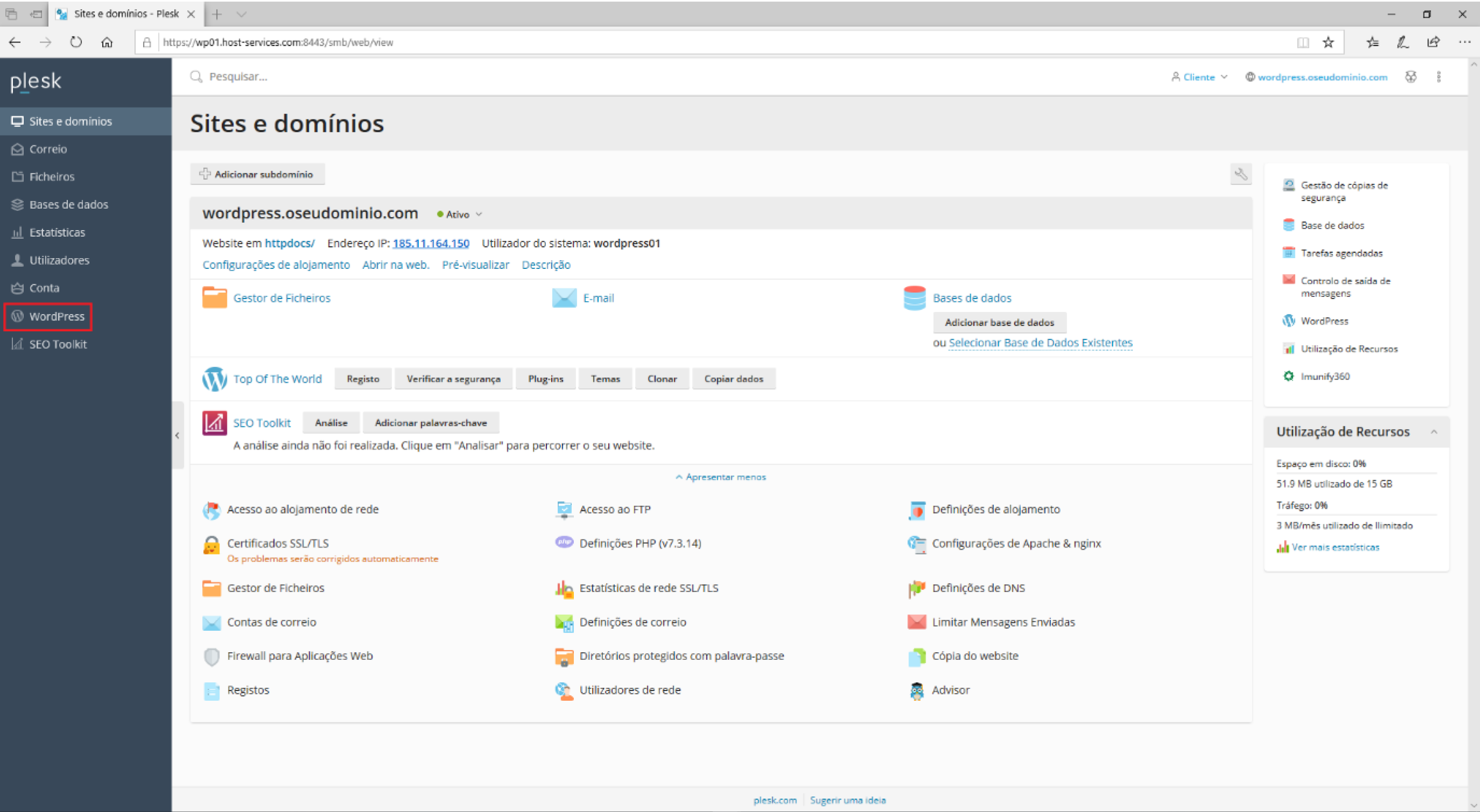 Descrição da ferramenta WordPress Toolkit, e respectivo acesso