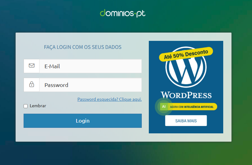 1) Aceda à sua área de cliente em https://my.dominios.pt: