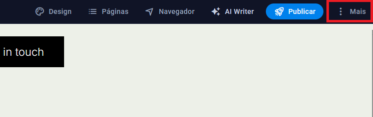 4) No painel do Sitejet deve clicar na opção “Mais” para verificar as opções de configurações.