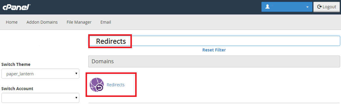 2) Clique em ‘Redirects’. Caso não localize esta opção basta pesquisar pela mesma digitando na caixa superior “Redirects“.