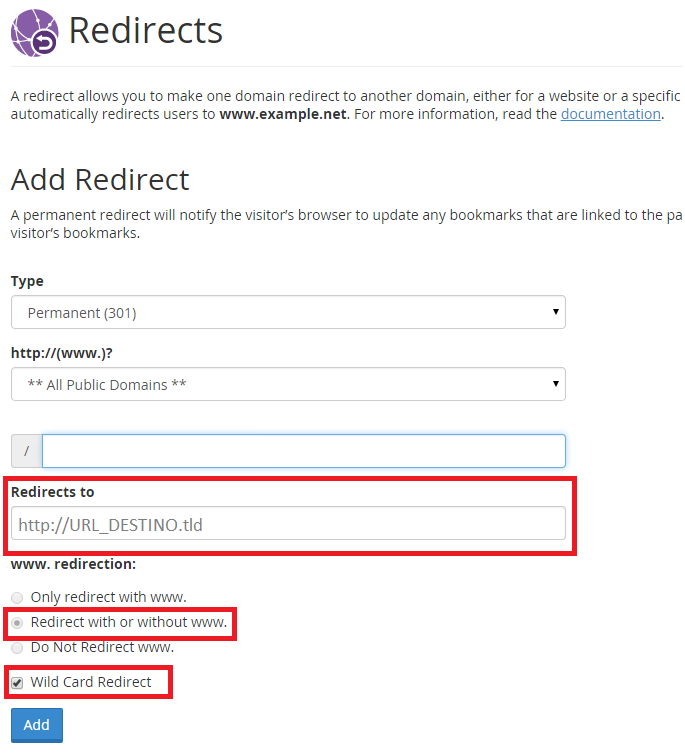 Por fim clique em ‘Add‘ para confirmar o redireccionamento